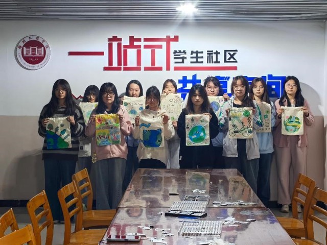 活动现场,同学们领取纯棉帆布袋和环保颜料,围绕“守护地球”“绿色生活”等主题进行创作。有的同学绘制了蔚蓝地球与绿树相映的图案,寓意人与自然和谐共生;有的则设计了简约时尚的环保标语,传递“减塑”理念。创作过程中,组织者还穿插讲解了帆布袋与塑料袋相比的环保优势,让参与者在实践中深化环保认知。在创意分享环节,每位参与者都讲述了作品背后的环保理念。一幅描绘北极熊的作品表达出应对气候变化的紧迫性,而印有“循环利用”字样的设计作品则倡导资源再生理念。同学们表示,通过这种寓教于乐的活动形式,环保理念真正融入到同学们的日常生活之中。