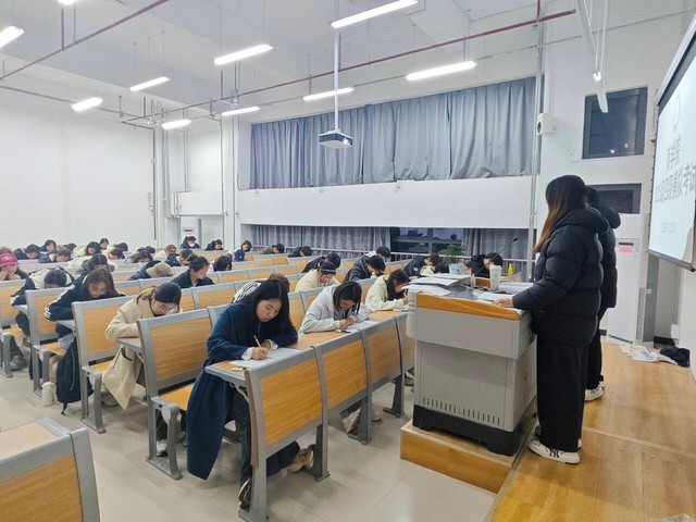 本次模拟考试从考场分布到监考安排,均严格对标正式考试规格,旨在让同学们在高度逼真的应试环境中绷紧备考“弦”,提前适应考试氛围。考场上,由员工骨干组成的志愿监考员团队全程专注履职,开考前仔细核对考生证件信息,考试中定时巡场提醒注意事项,收卷时严格规范流程,每一个环节都严谨细致、一丝不苟;参与考试的2025级员工迅速进入状态,将这场模拟考完全当作正式考试对待——听力环节紧盯试卷、专注捕捉关键信息;阅读部分逐题圈画、认真推敲逻辑,写作与翻译板块则反复斟酌措辞、规范书写,笔尖在答题卡上轻划的沙沙声里,满是对高分通关的认真与期待。整场考试从晚上6:00持续至8:20,全程秩序井然、考风清朗,既还原了真实考场的紧张氛围,也让同学们的备考质量和应试状态得到了全面检验。