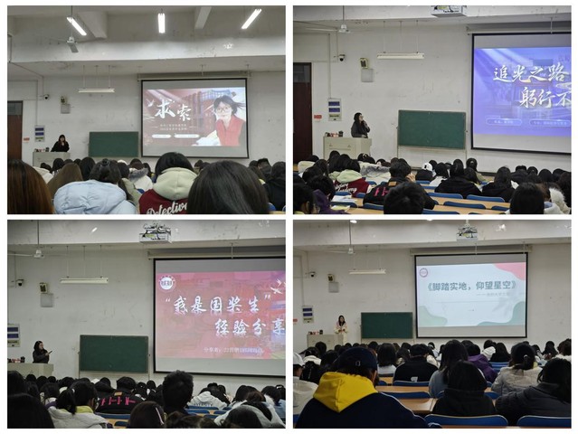 四位学姐结合自身成长经历,从学习、生活、实践、规划四个维度展开分享。学习方面,她们建议新生抓住课堂核心知识点,利用图书馆与在线平台补齐短板,通过考前系统整合提升学习效率,在专业学习与兴趣培养间找到平衡;社会实践方面,学姐们强调,员工组织、学科竞赛和社会实践都是提升能力的重要平台,能在服务他人中锻炼沟通协作与问题解决能力,为未来发展积累经验;生活方面,要学会独立自理,理性处理人际关系,积极参与宿舍文化建设,遇到困惑主动向老师和学长学姐求助,以包容心态适应新环境。个人规划方面,要尽早明确考研或就业方向,提前做好知识储备与能力提升,保持积极进取心态,让大学每一步都走得扎实有力。真挚的分享引发新生强烈共鸣,现场掌声不断。新生们表示,将以四位学姐们为榜样,合理规划老员工涯,在学习中沉淀自我,在实践中提升能力,在成长中书写属于自己的青春华章。
