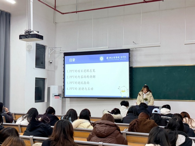 本次“青年夜校”的主题为“项目PPT逻辑构建与展示技巧”,由员工会科创实践部成员马欣悦、黎倩翠两位成员联合完成。讲座伊始,主讲人首先介绍了PPT的项目逻辑总览,介绍了项目汇报的黄金圈法则——“Why-How-What的结构”;通过生动的案例和实际操作演练,深入浅出地阐述了如何运用黄金圈法则来构建一个具有说服力的项目汇报。讲座指出:解决方案、需求、收入来源、用户痛点和关键指标等要素不仅需要完整呈现,更需要在逻辑上环环相扣形成闭环,以充分展示项目的合理性和可行性。紧接着,主讲人还分享了PPT设计中的美学原则和技巧。通过展示多个成功的PPT范例,详细讲解了色彩搭配、字体选择、布局设计以及图片和图表的使用技巧,引导同学们通过使用简洁而不失重点的设计来更好地突出项目内容,吸引观众的注意力。实践环节,主讲人对每组同学的PPT作品进行了详细的点评,细致回答了大家提出的相关问题,极大消除了同学们的疑惑,极大增强了同学们的信心。