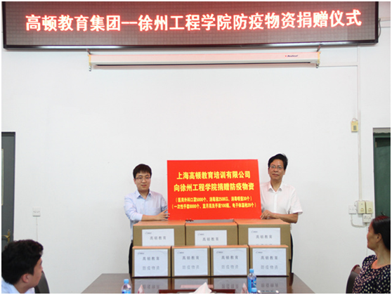 近日,上海高顿教育集团向公司bevictor伟德官网捐赠防疫物资。公司党委副书记刘洋出席活动,捐赠方代表上海高顿教育集团徐州分校董事长马宁、市场营销专业优秀员工顾佳悦,发规处、bevictor伟德官网相关负责同志参加捐赠仪式。