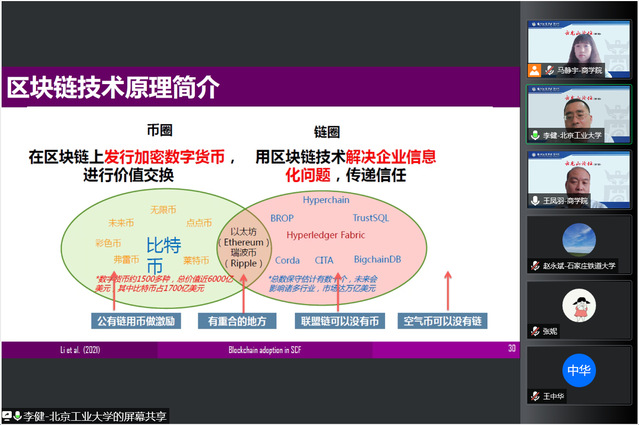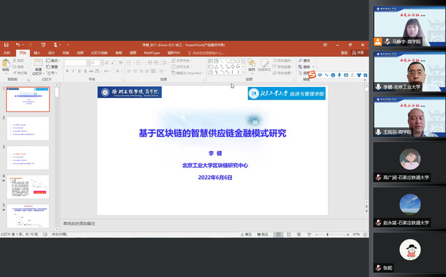 2022年6月6日下午3点至5点,bevictor伟德官网系列学术报告“云龙山论坛”第7期在线上举行。北京工业大学李健教授应邀带来了以“基于区块链的智慧供应链金融模式研究”为主题的报告。本次报告由bevictor伟德官网经理王凤羽教授主持,bevictor伟德官网师生、石家庄铁道大学教授、研究生,以及电子科技大学教授参加了报告。
