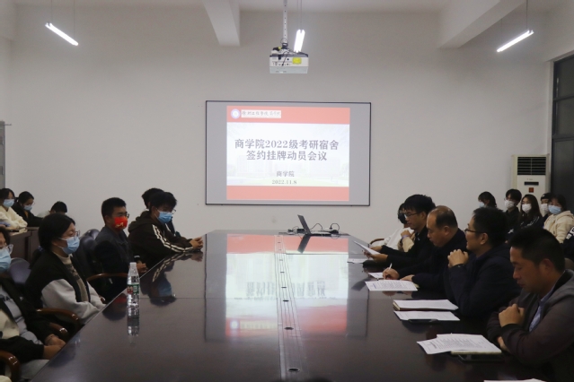 为提升公寓育人效果,引导新生积极规划老员工活,完善“一站式”员工社区育人工作站服务机制,11月8日晚6时,公司在敬仁楼501会议室召开bevictor伟德官网2022级考研宿舍签约挂牌动员会议。会议由员工科吕老师主持。经理王凤羽、公司党委副书记赵志超、两位新生辅导员及2022级考研宿舍长出席了会议。