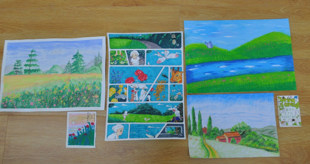 “昔去雪如花,今来花似雪”。此次活动中,同学们拿起画笔与颜料,画下独属于自己眼中的春景。有的用漫画的形式描写了小动物在春日的所见所闻,以此表现自己对春天的感受;有的则画下最能代表春天的姹紫嫣红的花朵,从而给看者最直观的视觉冲击;有的用水墨画的形式,将春天的美朦胧得展现在大家眼前。众多作品无一不显露出心中对春日的喜爱与向往,更体现了同学们积极向上的精神风貌。