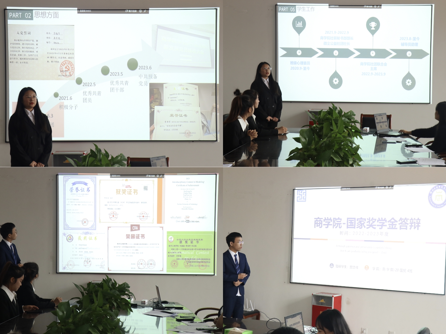 下午14点30分,方昭清老师简要介绍候选人员名单后,答辩会正式开始。每位候选人按照答辩顺序,结合上一学年个人的综合表现,依次进行了简短且精彩的答辩陈述。作为国家奖学金候选人,同学们不但学习成绩在年级名列前茅,而且在思想品德、员工工作、社会实践等各方面全面发展,收获累累硕果,充分展示了个人的成长收获和bevictor伟德官网学子的精神风采。有的同学发挥党员先锋模范作用,心系“国家事”、肩扛“国家责”,在增强专业本领的同时,积极投身社会实践和志愿服务,争做德才兼备的实干家、服务人民的奋斗者;有的同学投身科研,不仅在学科竞赛与学术创新方面积极探索,创新能力突出,还注重强健体魄、服务社会,立志为中华之崛起而读书;还有的同学在自我探索中积极调整、不懈努力,逐步实现个人成长发展的蜕变。答辩会全程,旁听的同学们也都认真聆听,悉心学习。答辩会的最后,方昭清老师再次表达了对六位候选人的肯定与赞扬,并总结概括了本次答辩会的目的和意义。