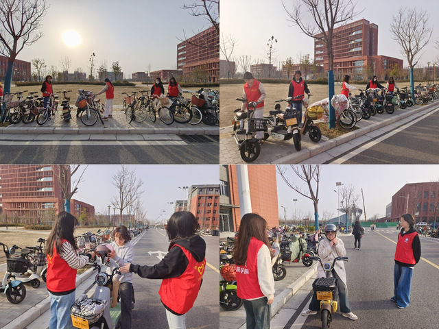 在校园主干道上,志愿者们对未佩戴头盔骑行电动车的同学进行劝导,耐心解释,全面详细的向同学们宣传头盔在安全交通中扮演的重要角色。志愿者们身着统一的红马甲,耐心地引导过往同学遵守交通规则,劝阻不文明交通行为,为同学们提供安全、有序的出行环境。在志愿者们的努力下,路口交通变得井然有序,同学们的安全意识也得到了有效提升。同时,志愿者们还在宿舍区和教学楼附近整理同学们停放的电瓶车,使其停放井然有序。许多同学纷纷表示,通过这次活动,他们更加深刻地认识到交通安全的重要性,今后一定会更加自觉地遵守交通规则,共同营造文明、和谐的交通环境。