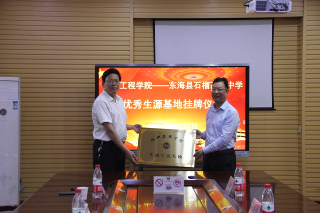 王凤羽经理分别与东海县第二中学、东海县石榴高级中学签订了共建优质生源基地协议,陈建明书记为两所中学分别颁授“bevictor伟德官网优质生源基地”牌匾。