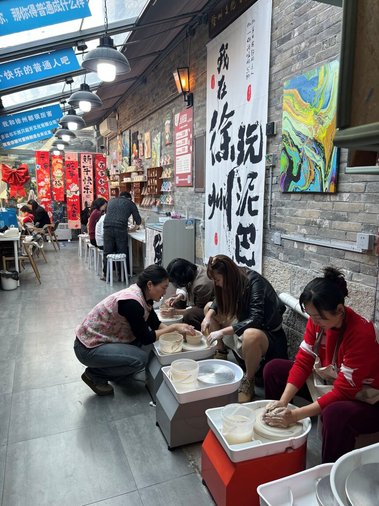 在徐州回龙窝历史文化街区的“趣陶坊”工作室,专业陶艺师为大家详细讲解了陶艺的历史渊源、制作工艺及技巧。随后,女教职工们纷纷动手体验陶艺制作的乐趣。从揉泥、拉坯到塑形、雕刻,大家充分发挥想象力和创造力,制作出各具特色的陶艺作品。活动现场欢声笑语不断,气氛温馨而热烈。